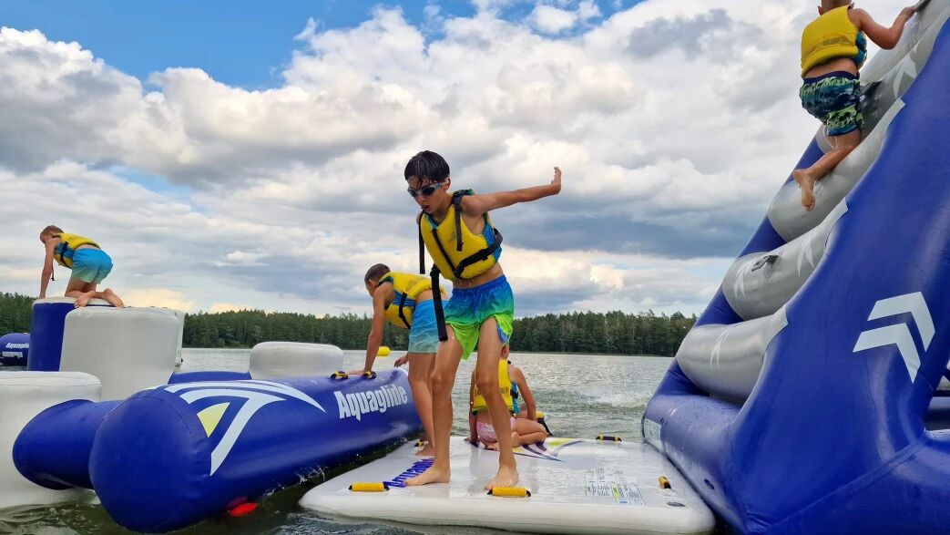 WATERFUN – ekscytujący, wodny park rozrywki na jeziorze. Różnego rodzaju przeszkody, zjeżdżalnie, super zabawa bez ograniczeń - NOWOŚĆ, w 2025 roku jeszcze większy!